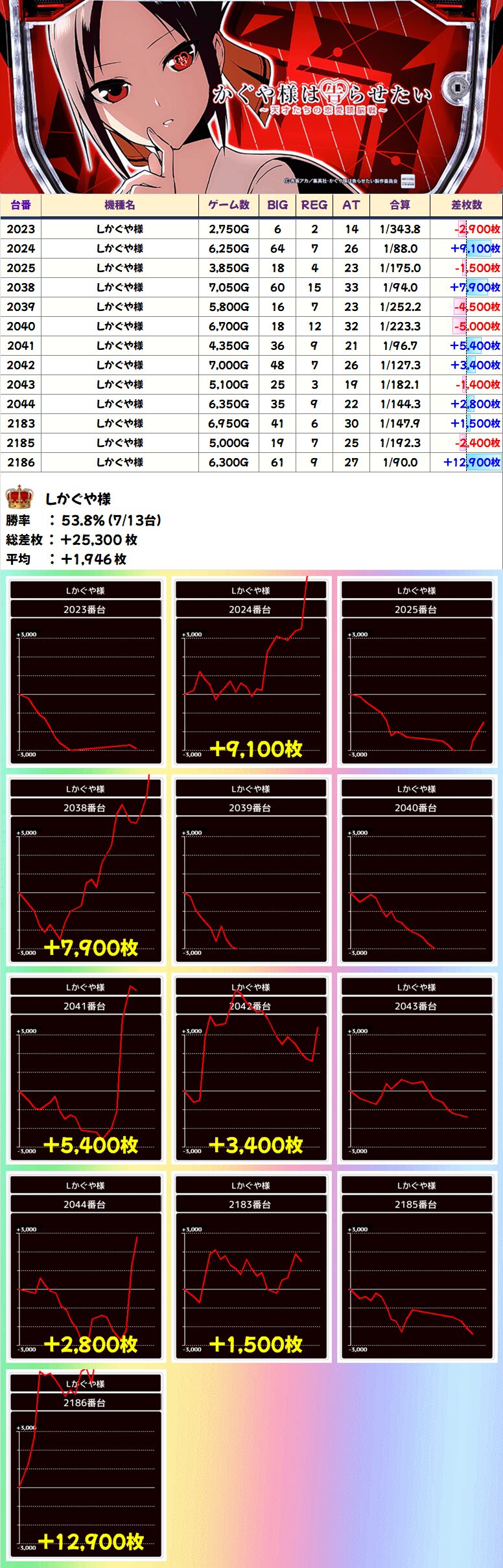 Lかぐや様 (7/13台+) ➡平均 +1,946枚