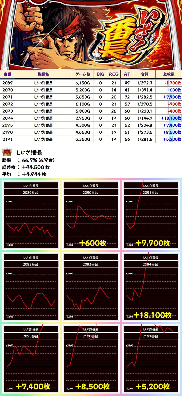 Lいざ!番長 (6/9台+) ➡平均 +4,944枚