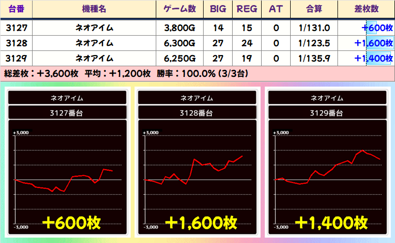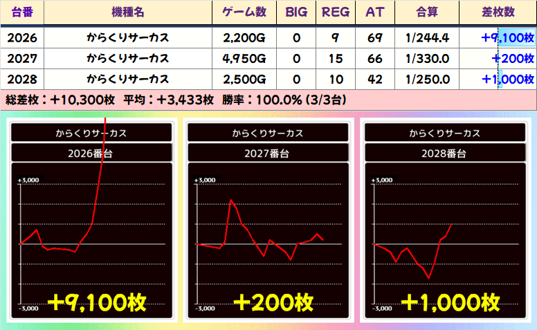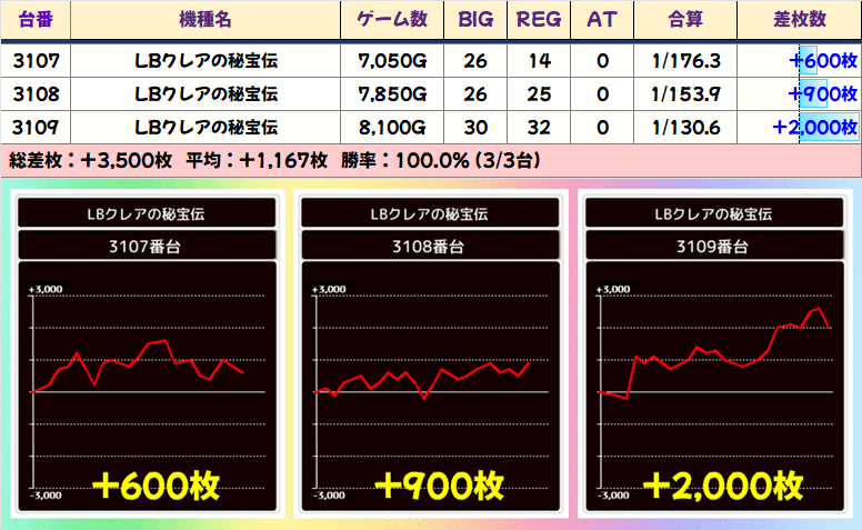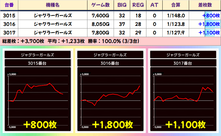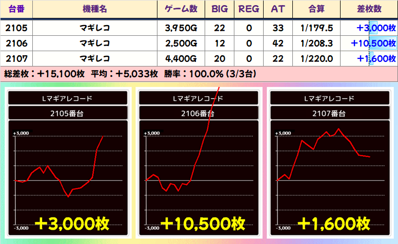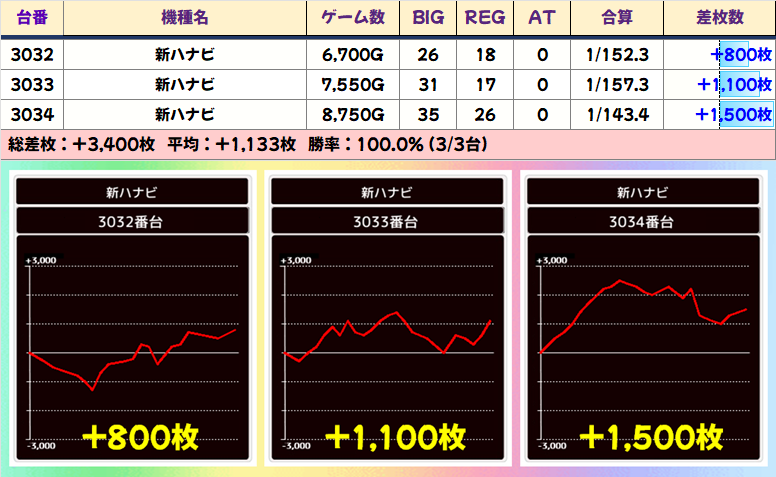 今回も優秀台大量で平均490枚のプラスでした!さすが激アツ周年日!