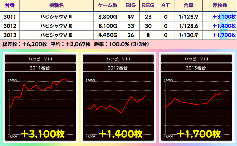 本日は3台並び仕掛けも多数アリ!以下の個所が優秀並びとなったようです!