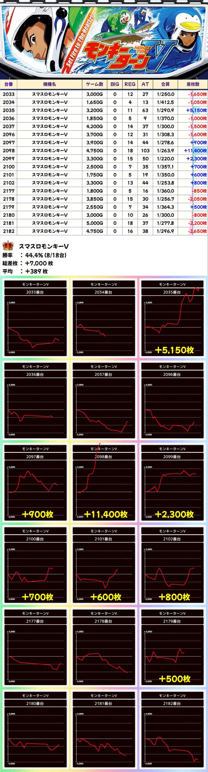 スマスロモンキーV (8/18台+) ➡平均 +389枚