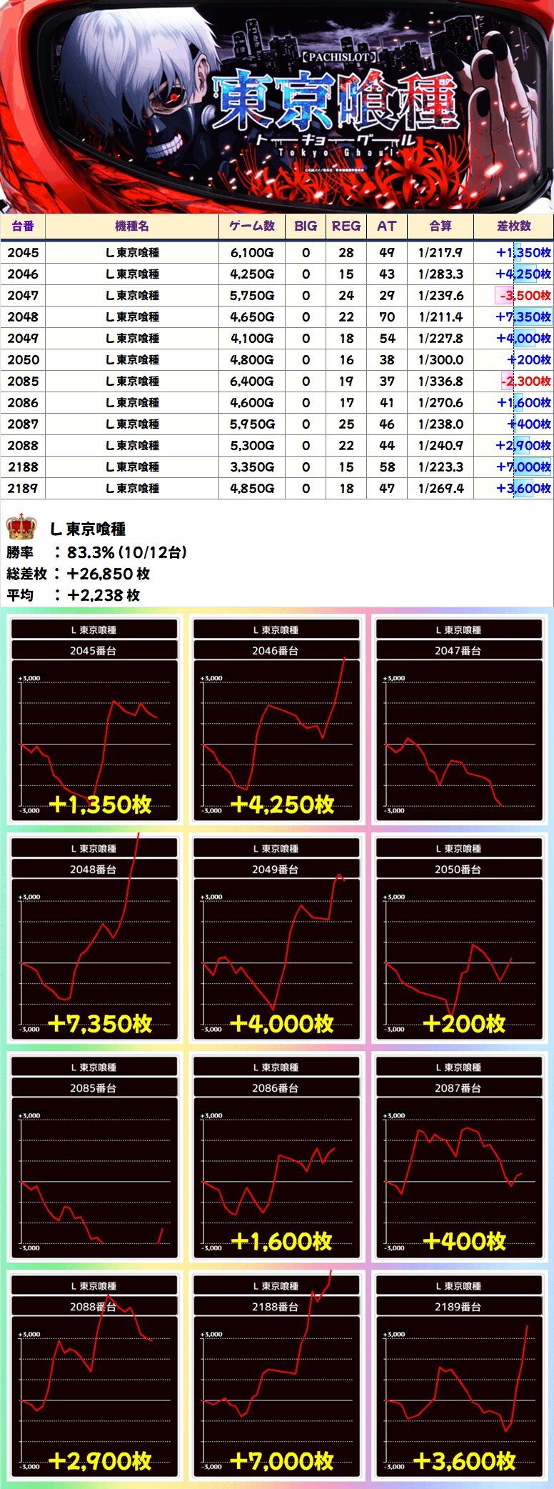 L 東京喰種 (10/12台+) ➡平均 +2,238枚