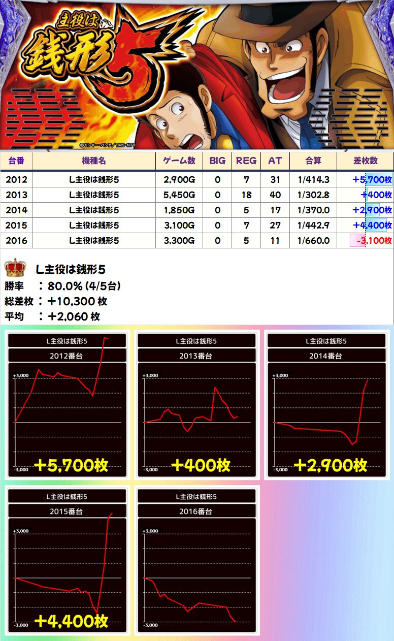 L主役は銭形5 (4/5台+) ➡平均 +2,060枚