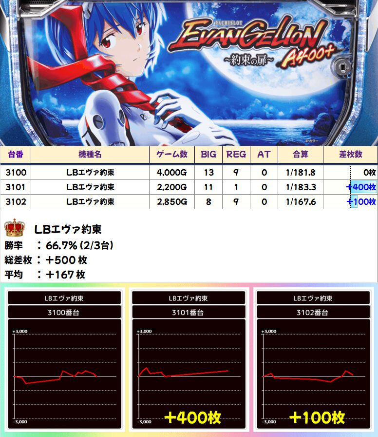 LBエヴァ約束 (2/3台+) ➡平均 +167枚
