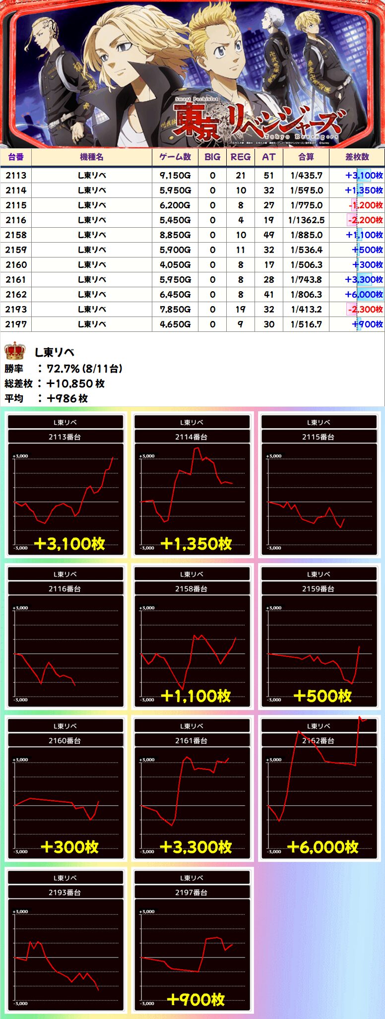 L東リベ (8/11台+) ➡平均 +986枚