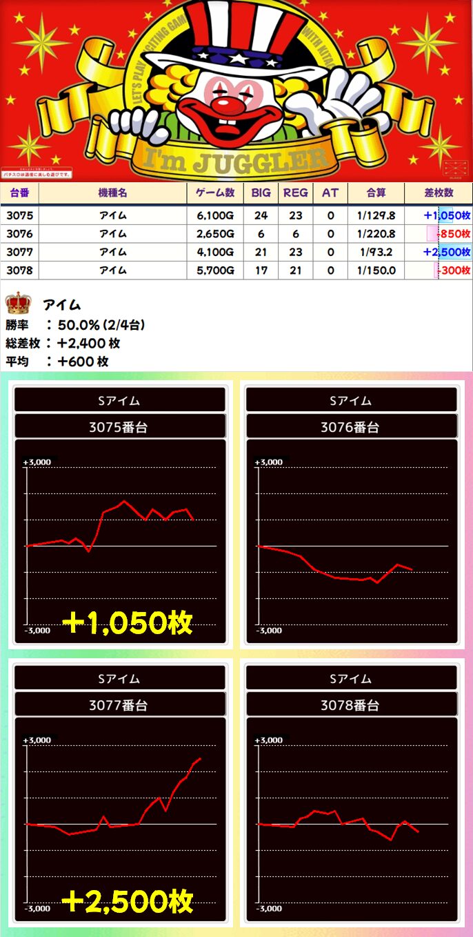 アイム (2/4台+) ➡平均 +600枚