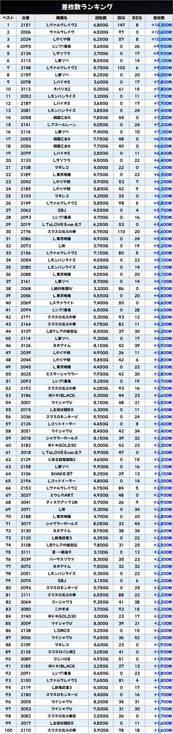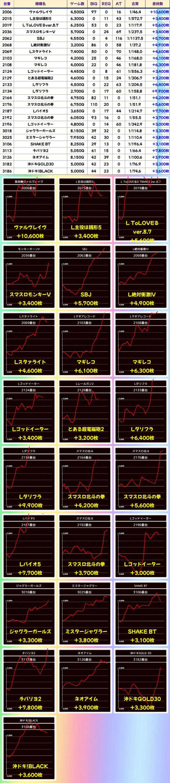 高配分機種も8機種あり!いずれの機種もしっかり差枚がプラスです!