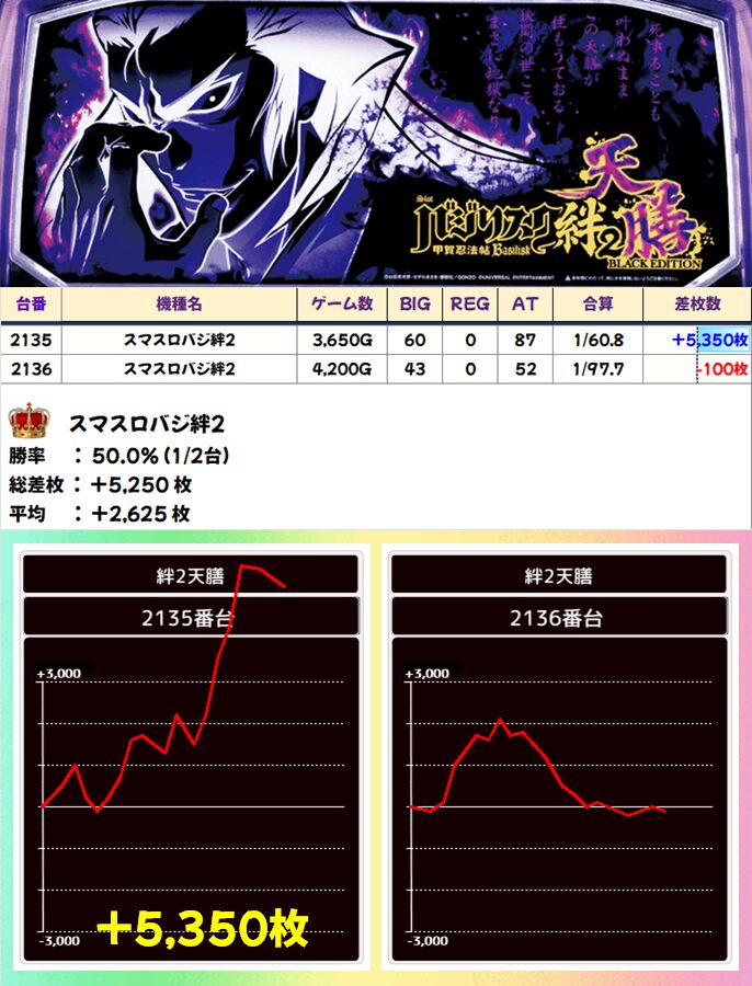 スマスロバジ絆2 (1/2台+) ➡平均 +2,625枚