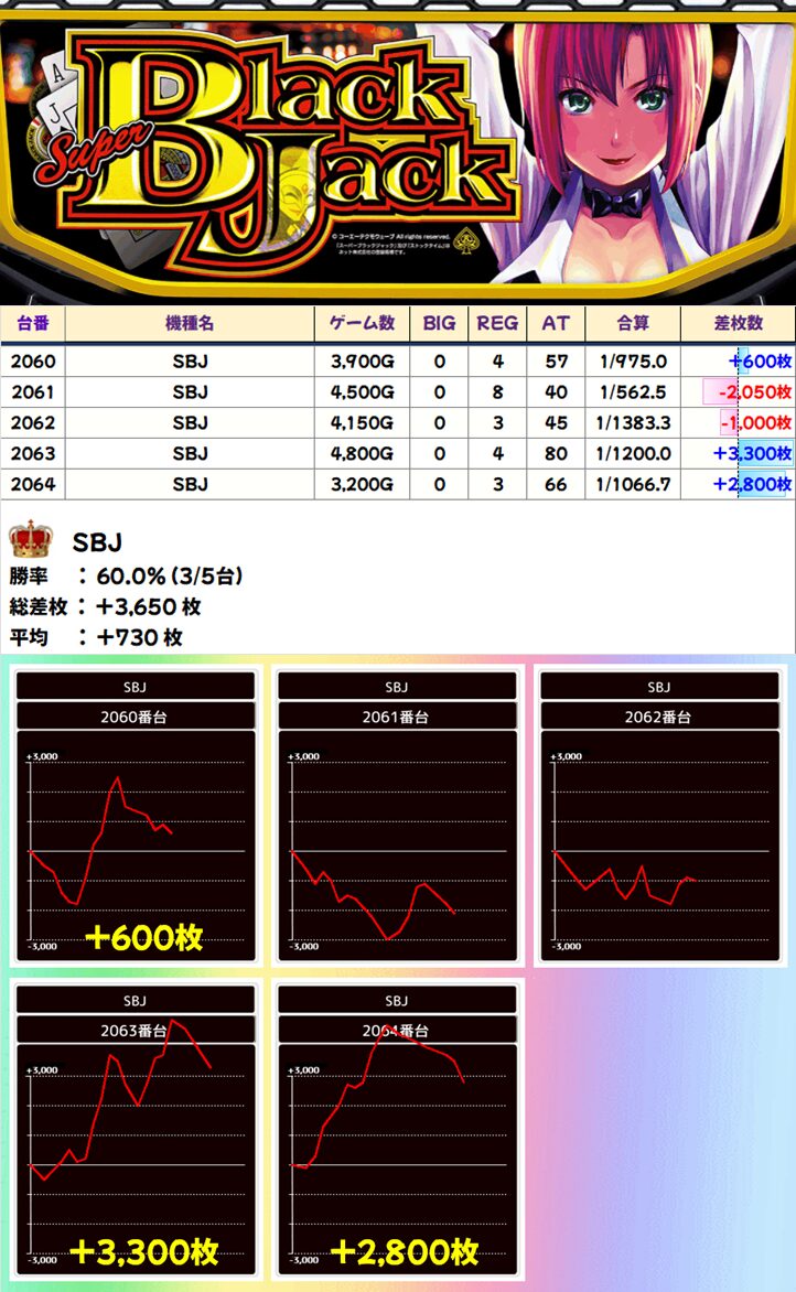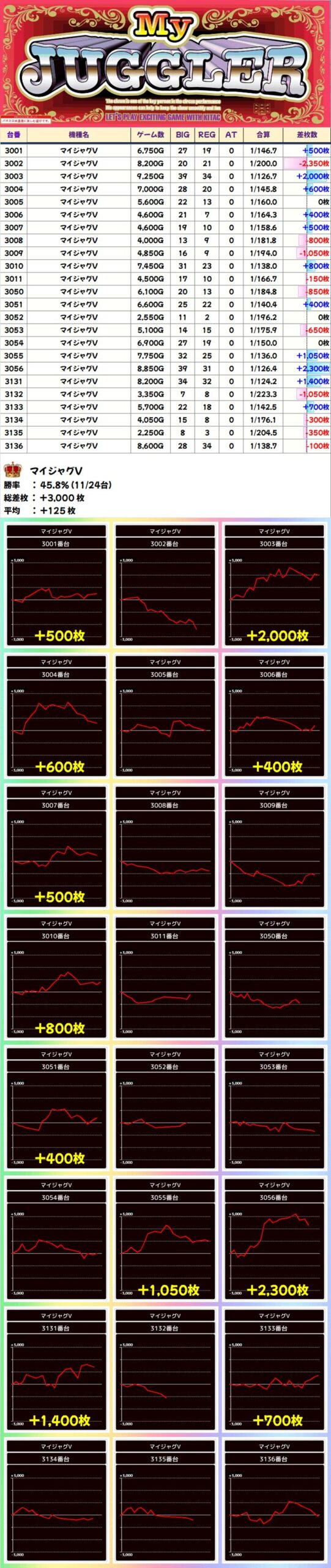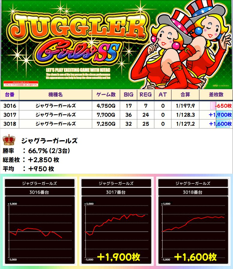 ジャグラーガールズ (2/3台+) ➡平均 +950枚