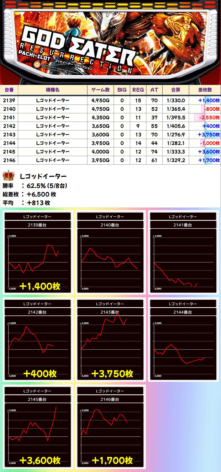 Lゴッドイーター (5/8台+) ➡平均 +813枚