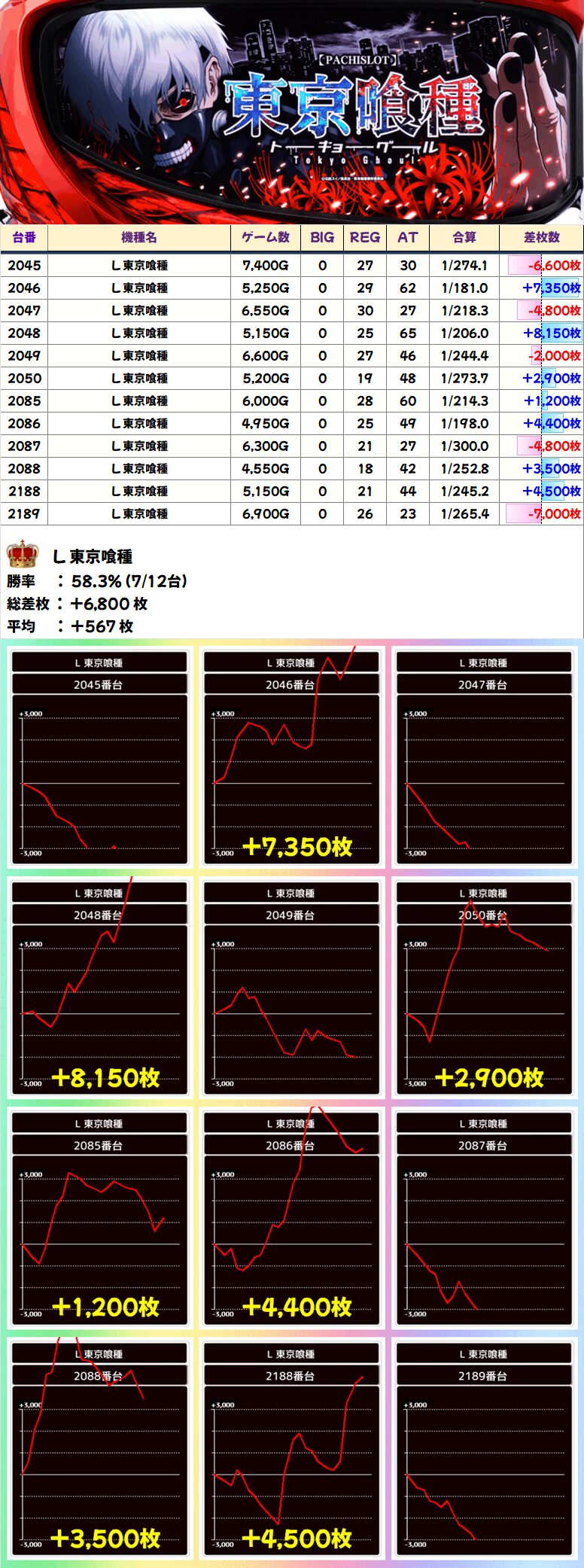 L 東京喰種 (7/12台+) ➡平均 +567枚