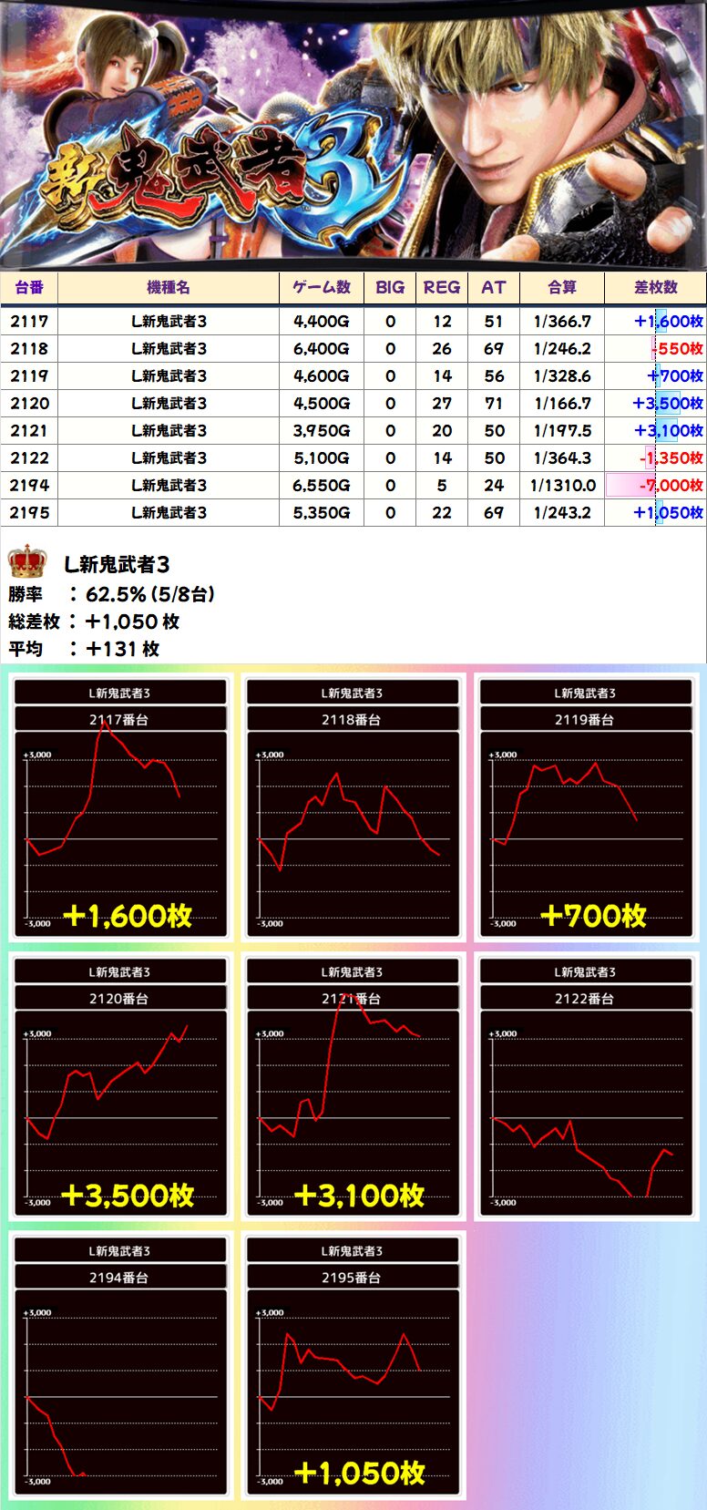L新鬼武者3 (5/8台+) ➡平均 +131枚