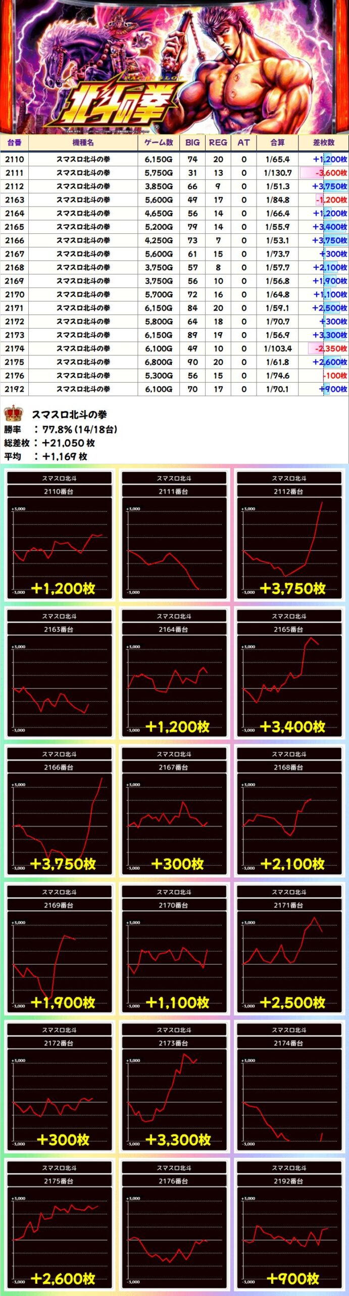 スマスロ北斗の拳 (14/18台+) ➡平均 +1,169枚