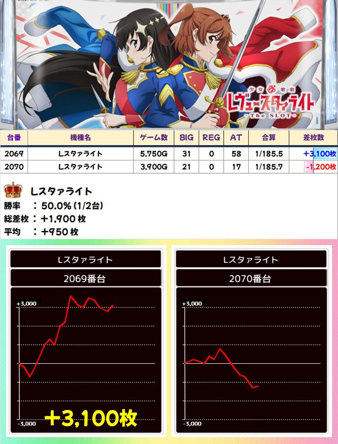 Lスタァライト (1/2台+) ➡平均 +950枚