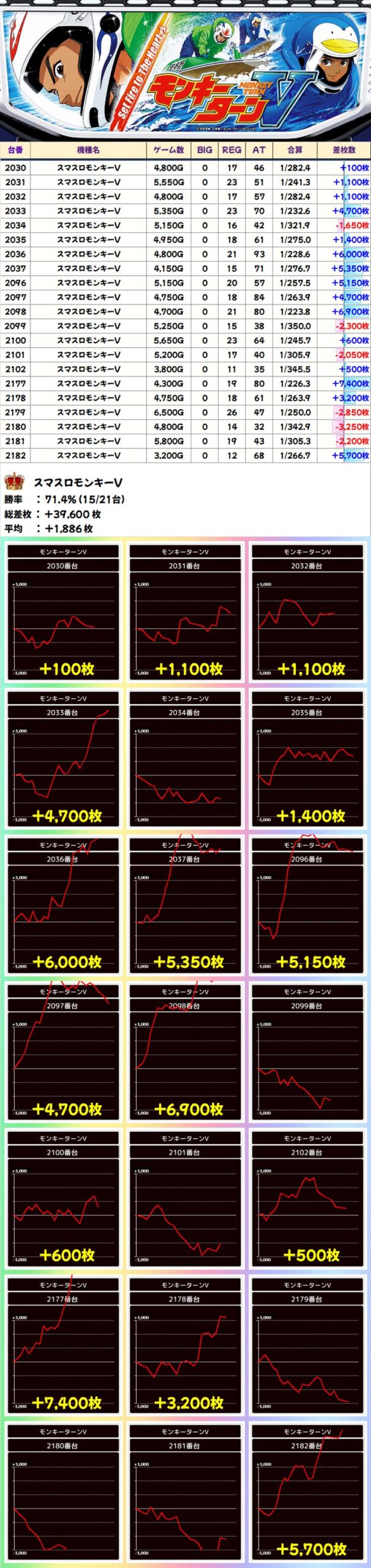 スマスロモンキーV (15/21台+) ➡平均 +1,886枚