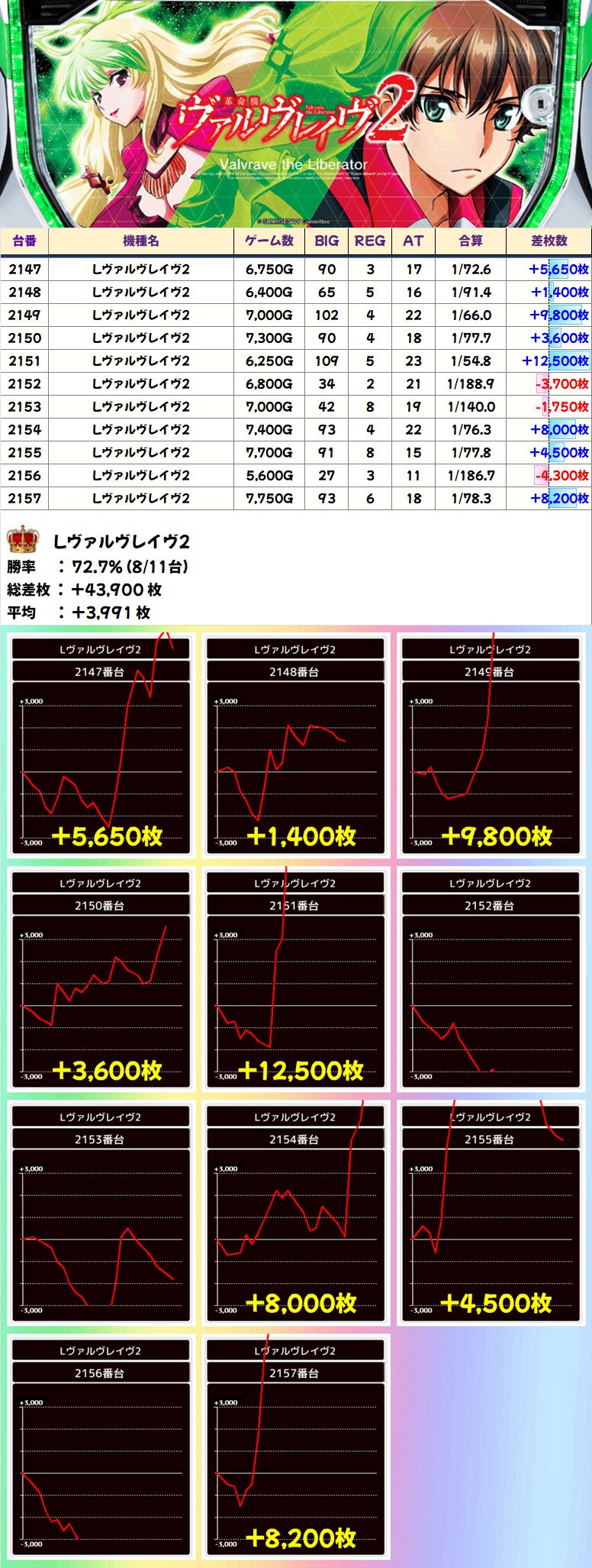 Lヴァルヴレイヴ2 (8/11台+) ➡平均 +3,991枚