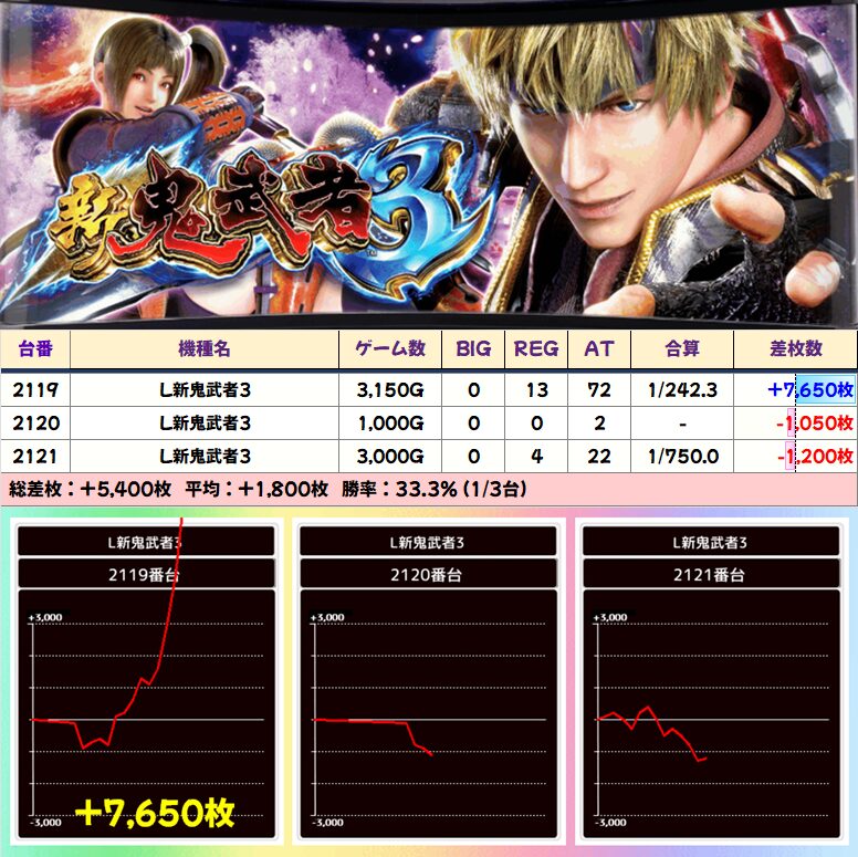 人気機種のアズレンが全台系濃厚!惜しくも1台マイナスですが、勝率をみても間違いなさそうです。