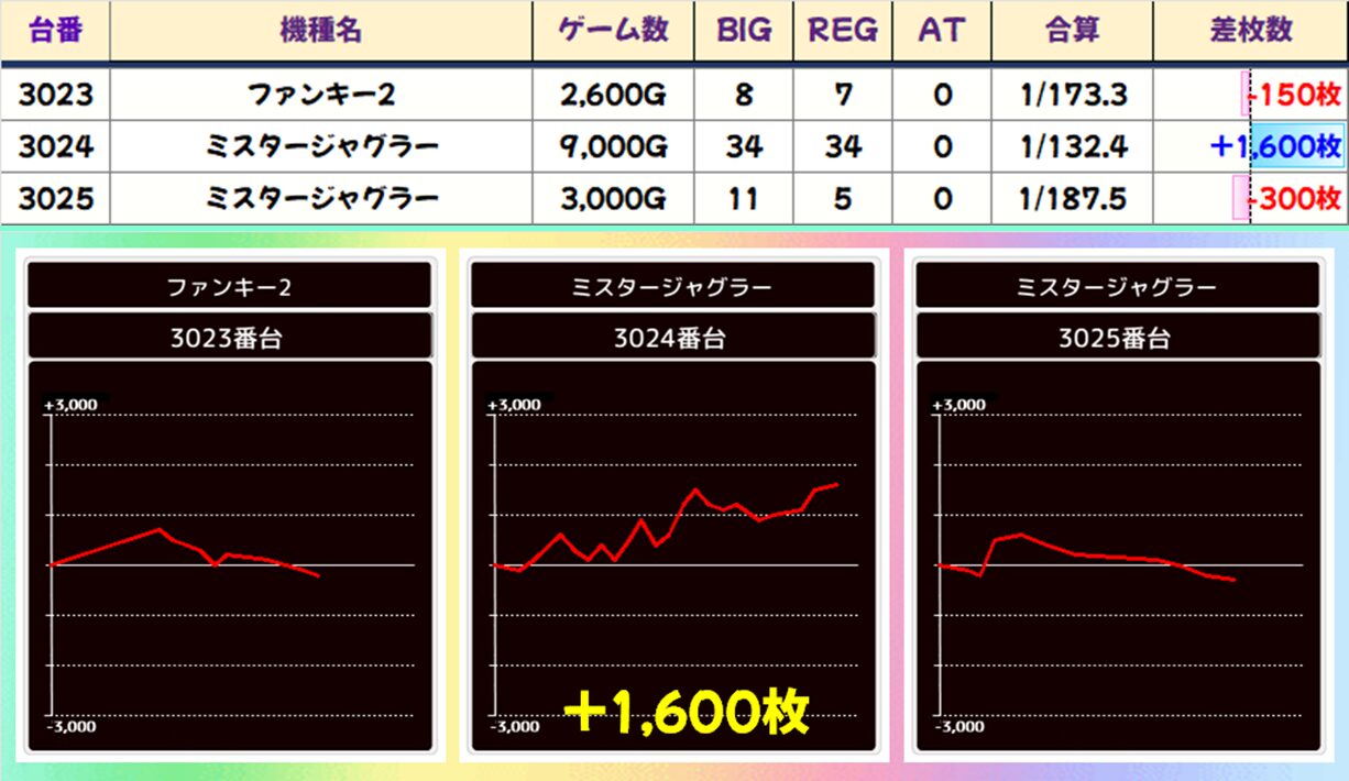 【3台並び】ファンキー2&ミスタージャグラー(3023-3025番台)