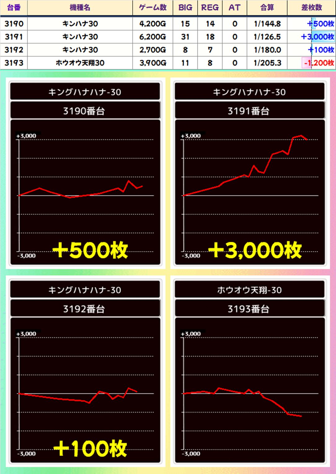 【4台並び】キンハナ30&ホウオウ天翔30(3190-3193番台)平均+600枚