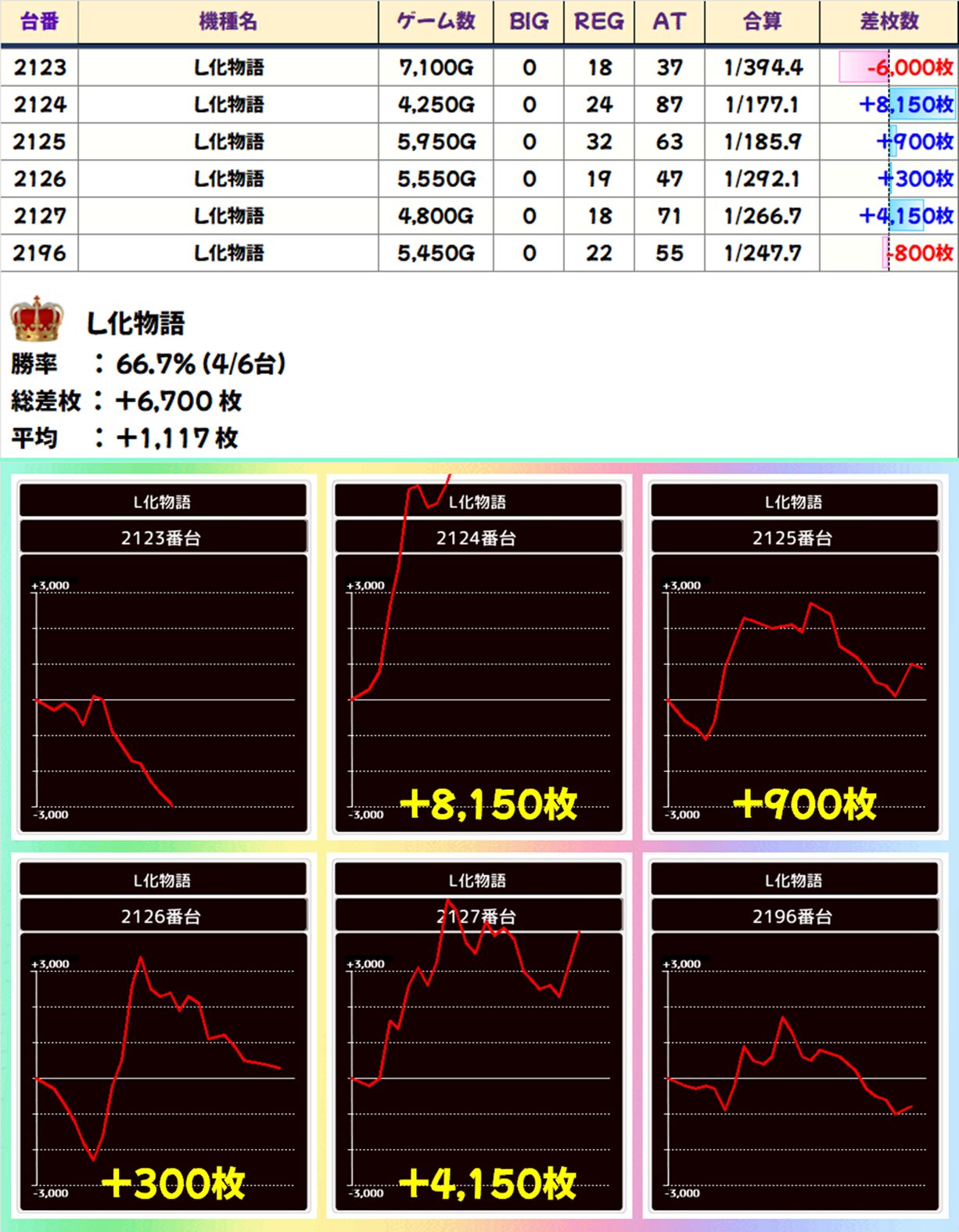 L化物語 (4/6台+) ➡平均 +1,117枚