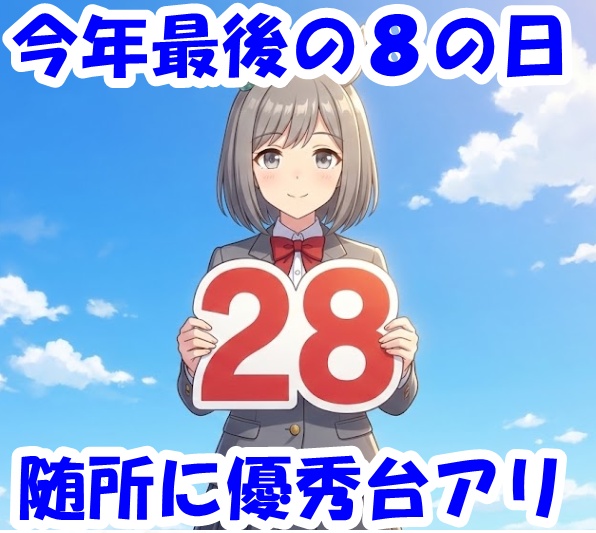 12月28日(日)│エスパス高田馬場│今年最後の8のつく日!今回も全台系濃厚機種と高配分仕掛けアリ!並び仕掛けも大量に用意!!