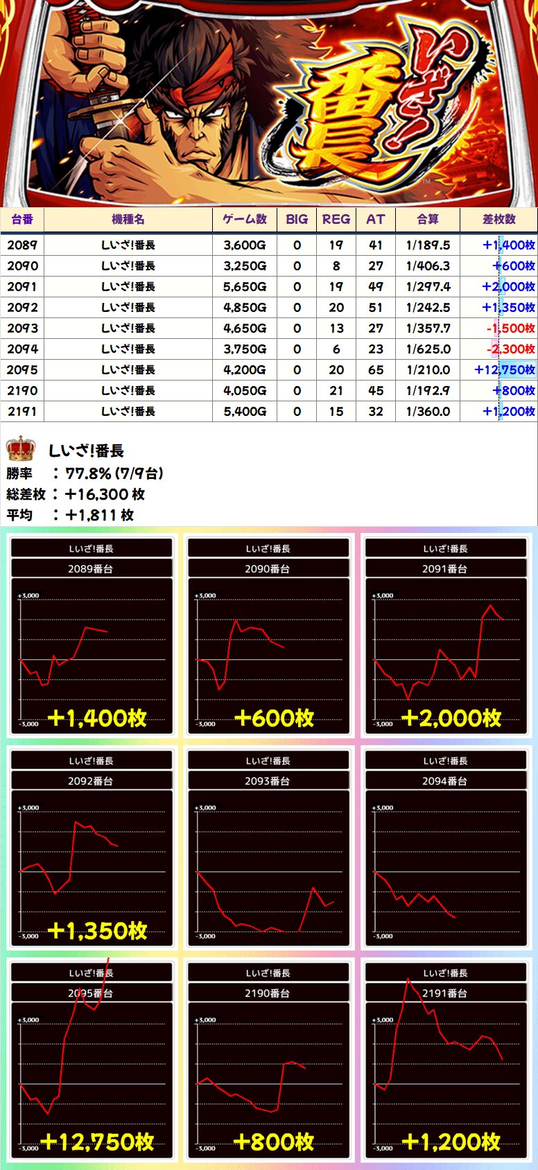 Lいざ!番長 (7/9台+) ➡平均 +1,811枚