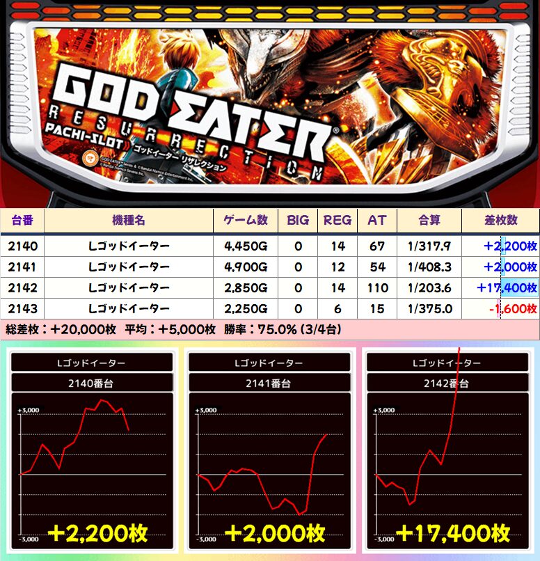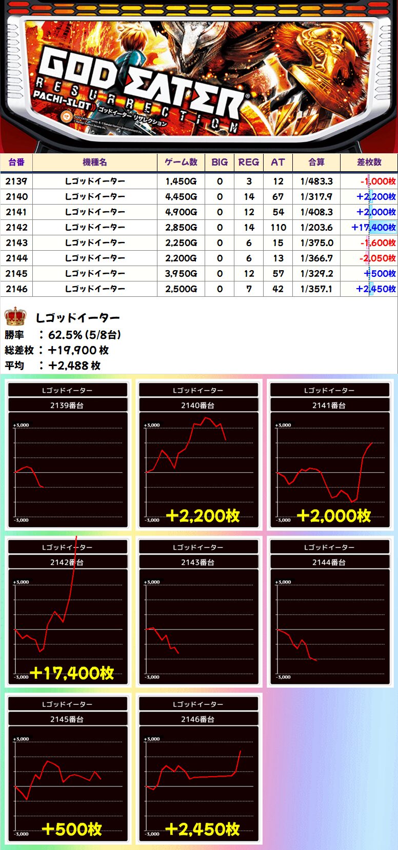Lゴッドイーター (5/8台+) ➡平均 +2,488枚
