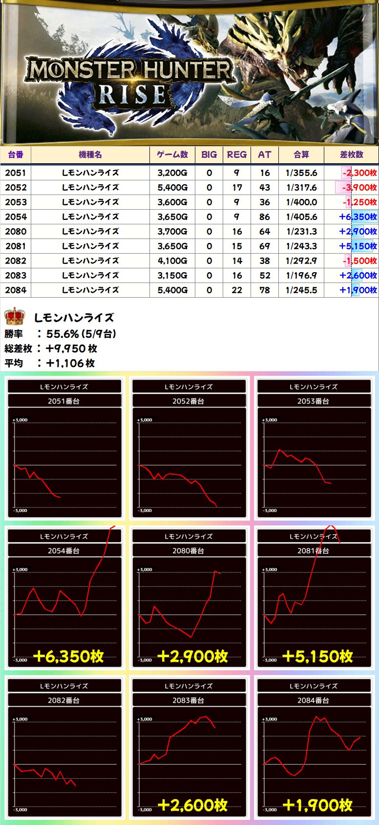 Lモンハンライズ (5/9台+) ➡平均 +1,106枚