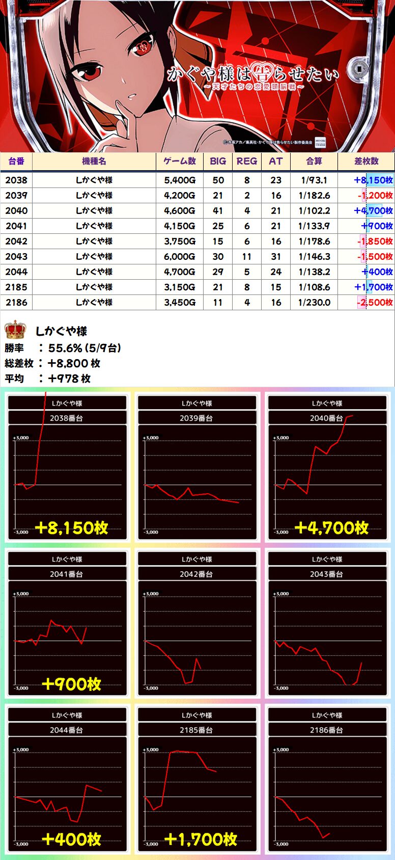 Lかぐや様 (5/9台+) ➡平均 +978枚