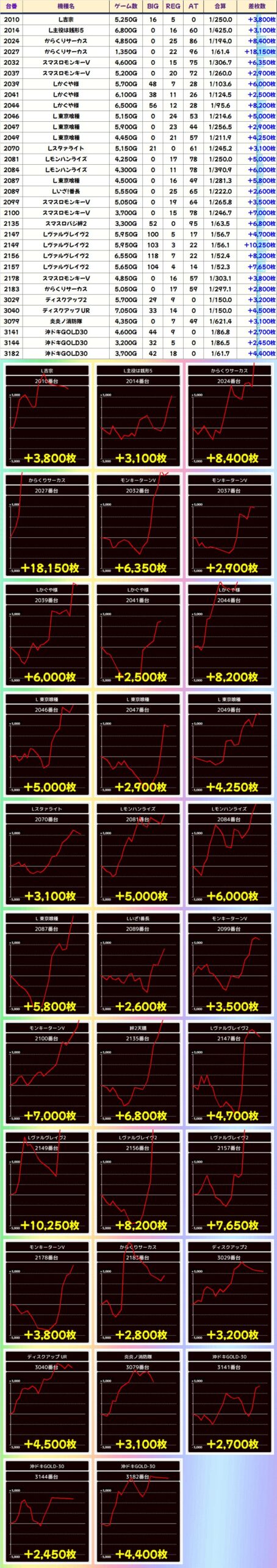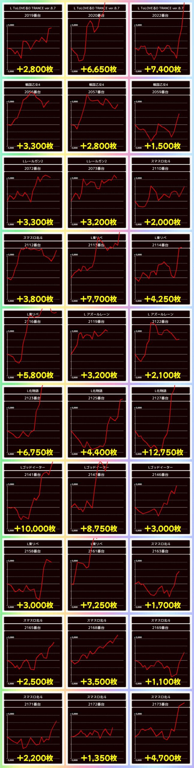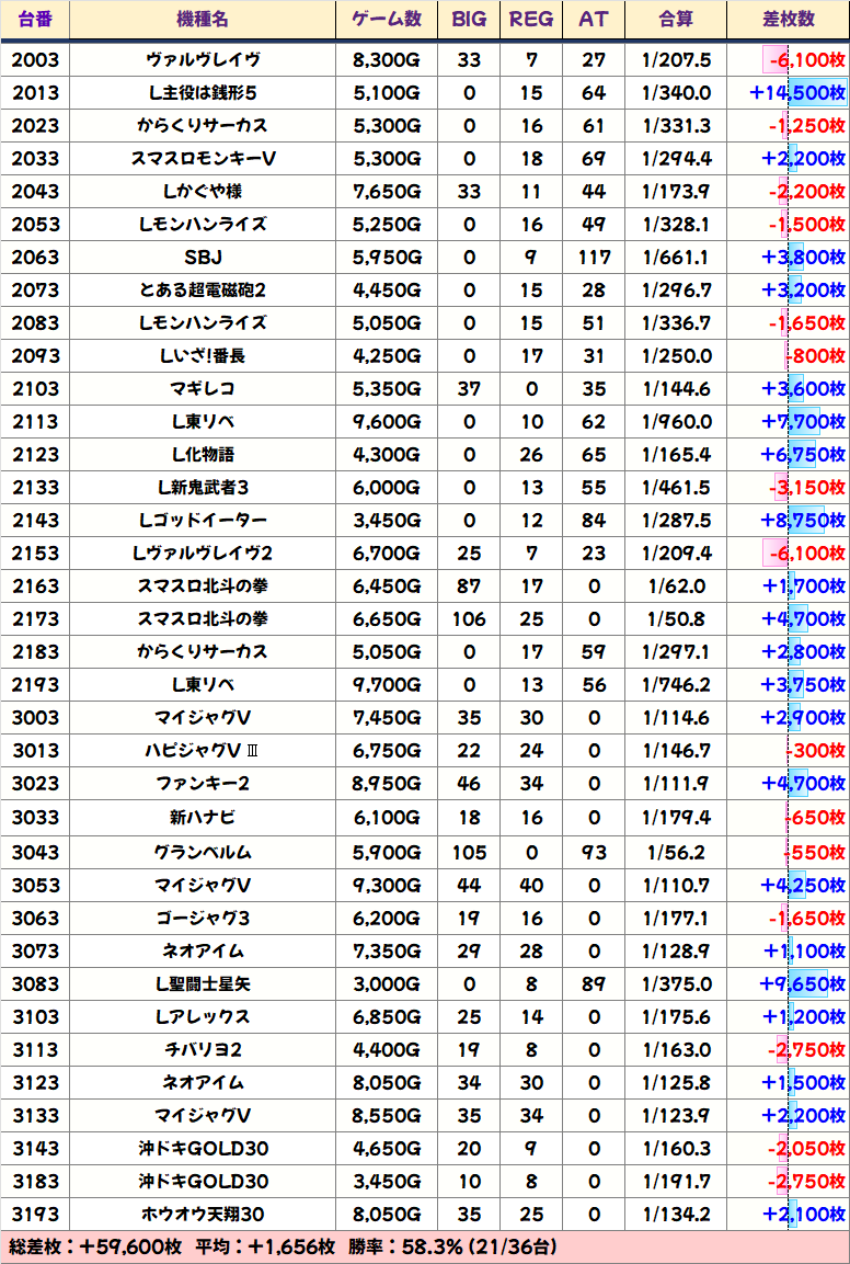 高配分機種も10機種あり!いずれの機種もしっかり差枚がプラスです!