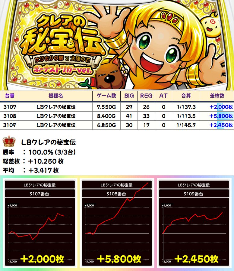 LBクレアの秘宝伝 (3/3台+) ➡平均 +3,417枚