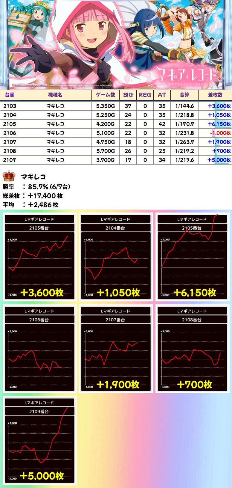 マギレコ (6/7台+) ➡平均 +2,486枚