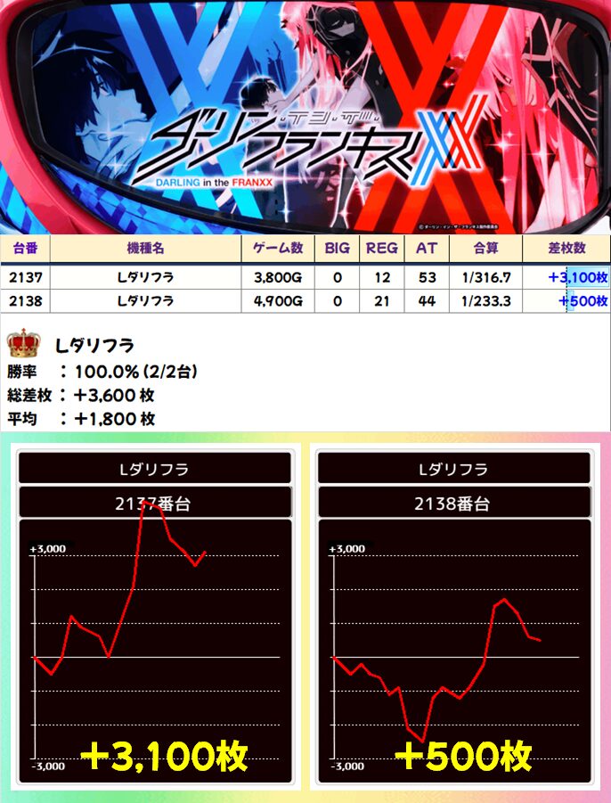 Lダリフラ (2/2台+) ➡平均 +1,800枚
