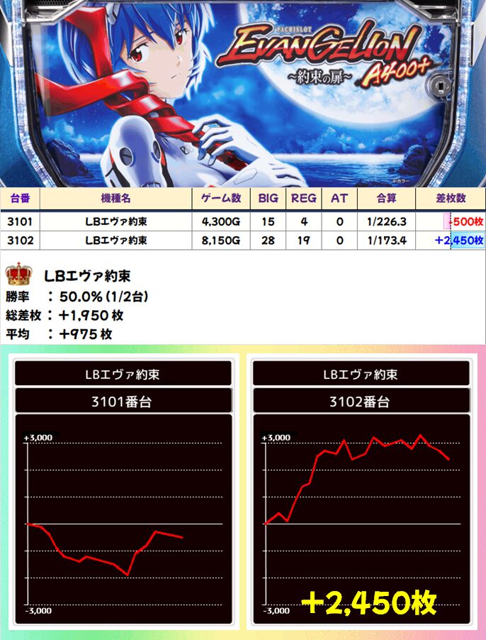 LBエヴァ約束 (1/2台+) ➡平均 +975枚