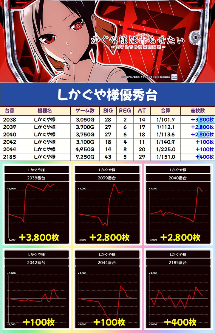 Lかぐや様 (6/9台+) ➡平均 +872枚