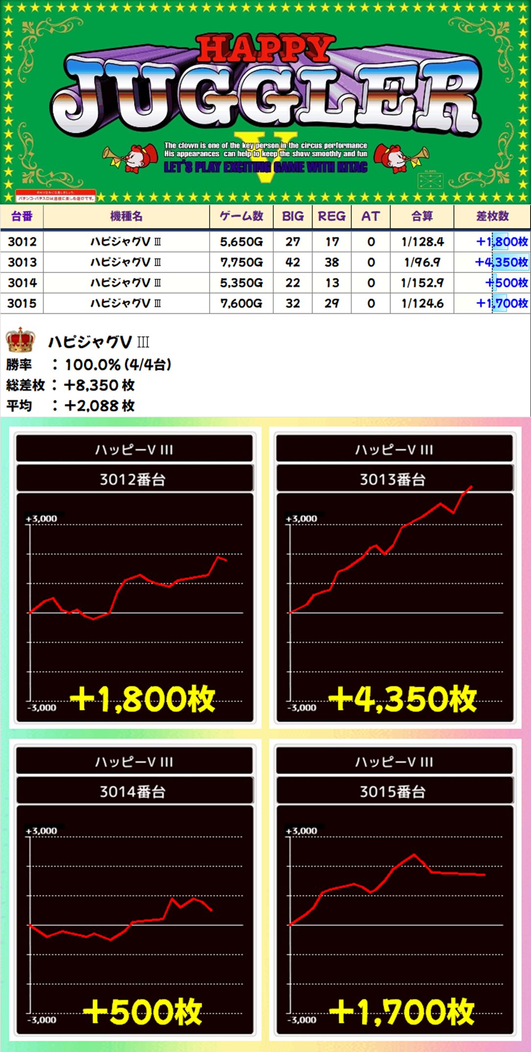 ハピジャグV Ⅲ (4/4台+) ➡平均 +2,088枚