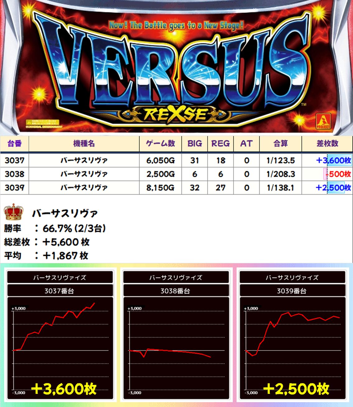 バーサスリヴァ (2/3台+) ➡平均 +1,867枚