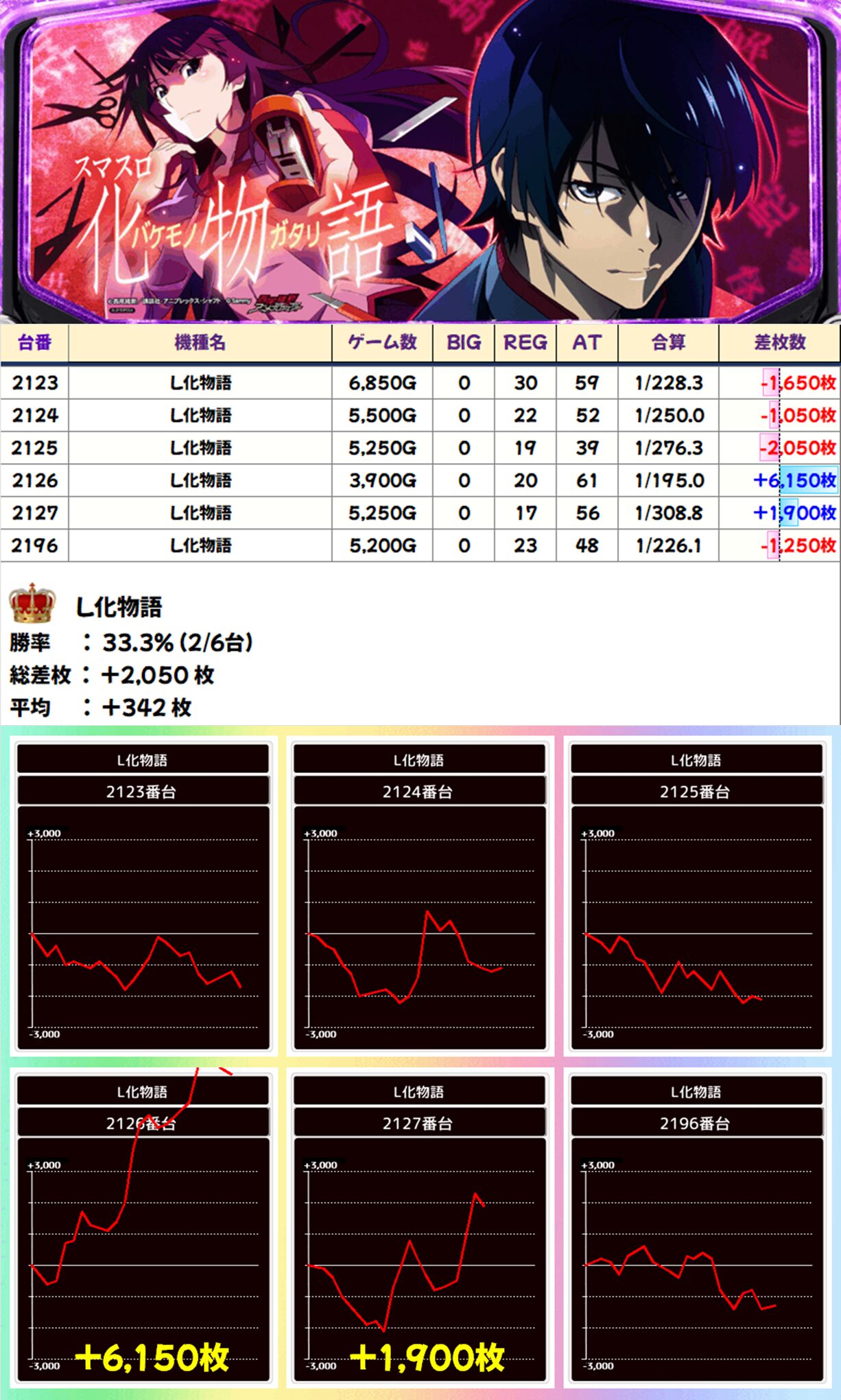 【3台並び】化物語(2126-2127番台、2196番台)➡平均+2,267枚