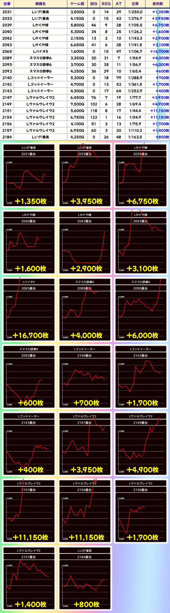 平均差枚は270枚超とかなりの好成績!前日の土曜日に負けず劣らずの結果です!