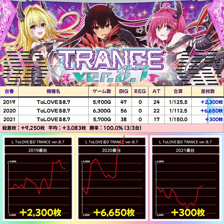 【3台並び】ToLOVEるダークネス(2019-2021番台)➡平均+3,083枚