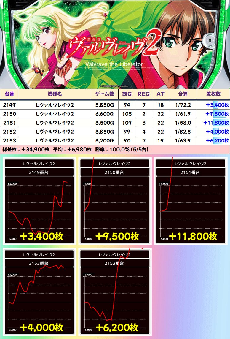 【5台並び】ヴァルヴレイヴ2(2149-2153番台)➡平均+6,980枚
