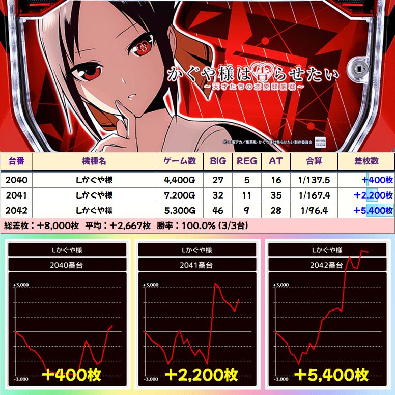 【3台並び】かぐや様(2040-2042番台)➡平均+2,667枚