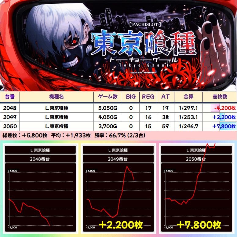 【3台並び】東京喰種(2048-2050番台)➡平均+1,933枚