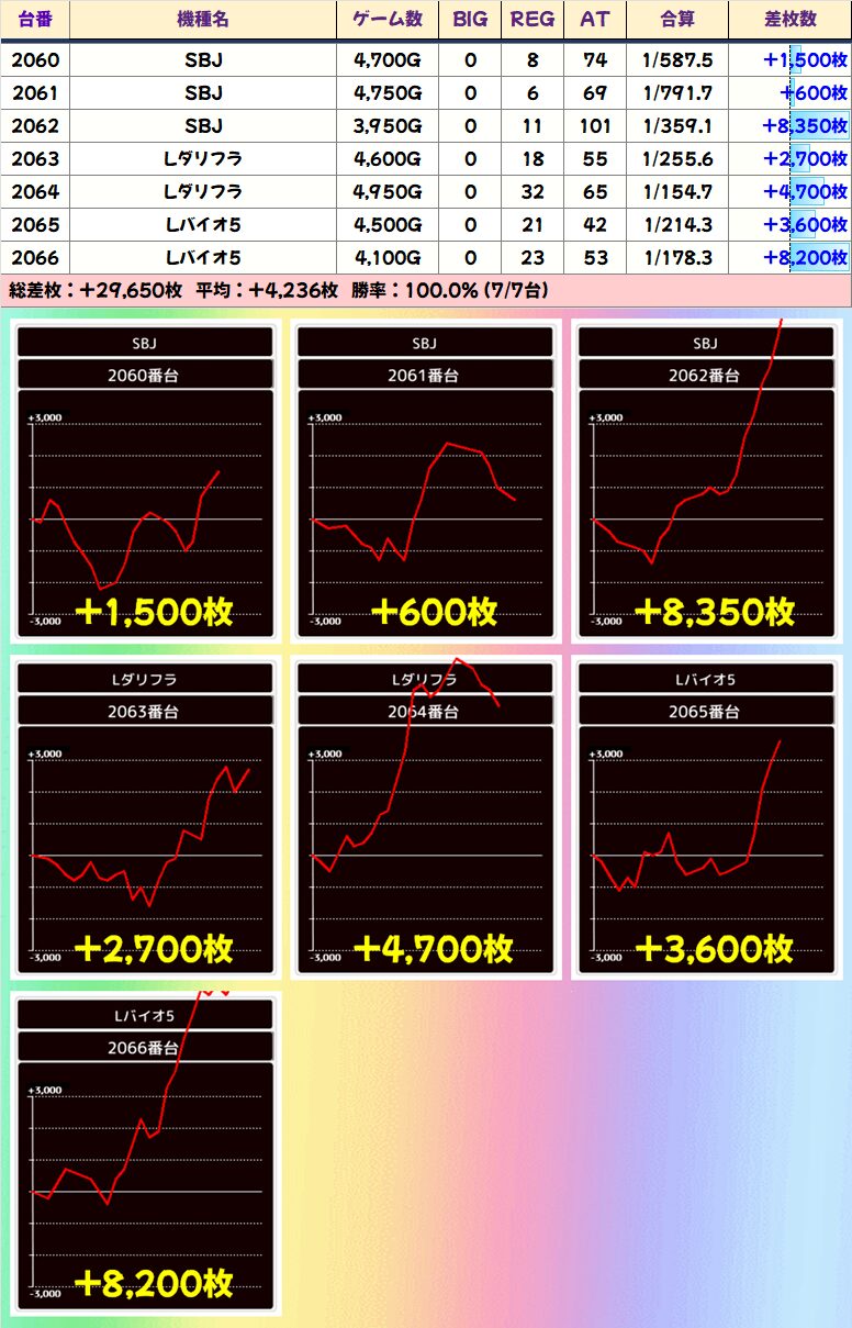 今回も優秀台大量で平均265枚のプラスでした!さすが激アツ周年日!