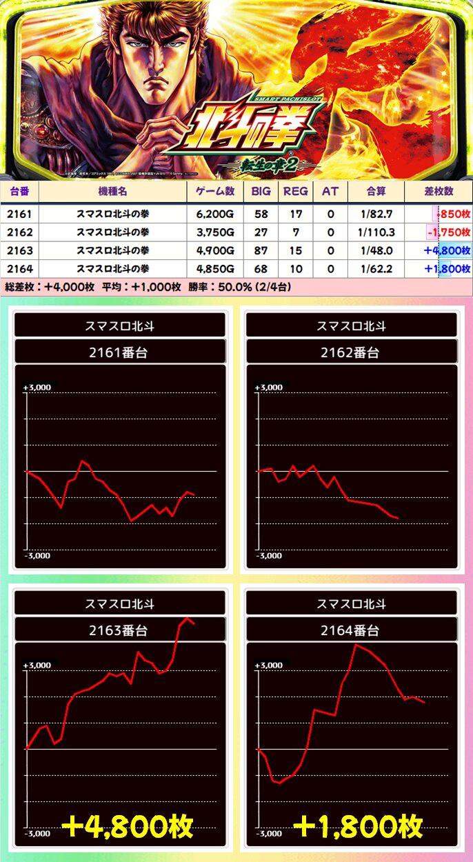 【4台並び】スマスロ北斗の拳(2161-2164番台)➡平均+1,000枚