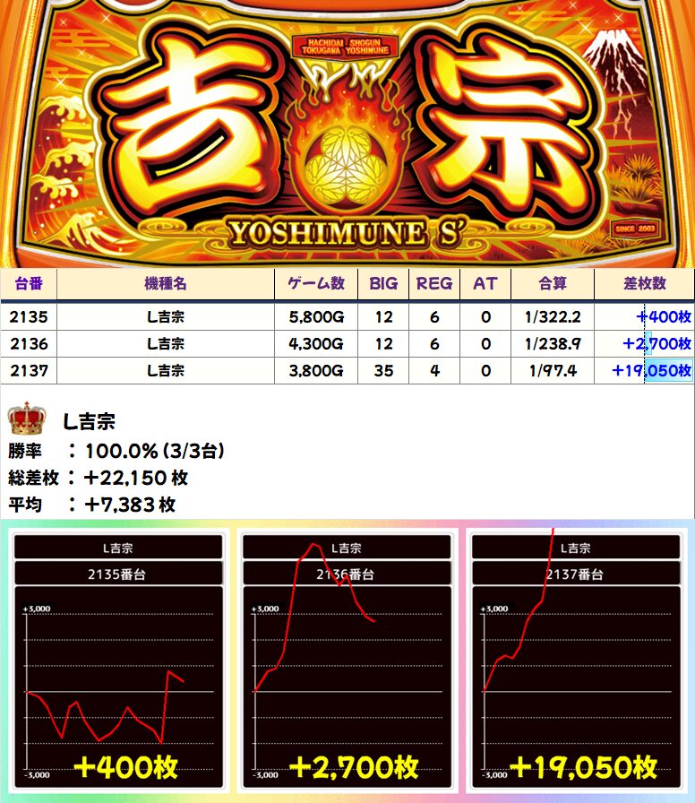 L吉宗 (3/3台+) ➡平均 +7,383枚