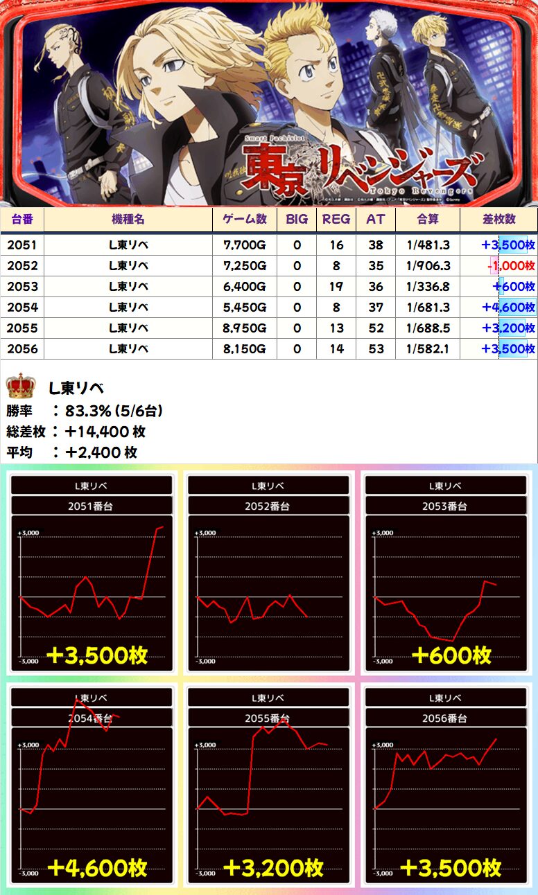 L東リベ (5/6台+) ➡平均 +2,400枚