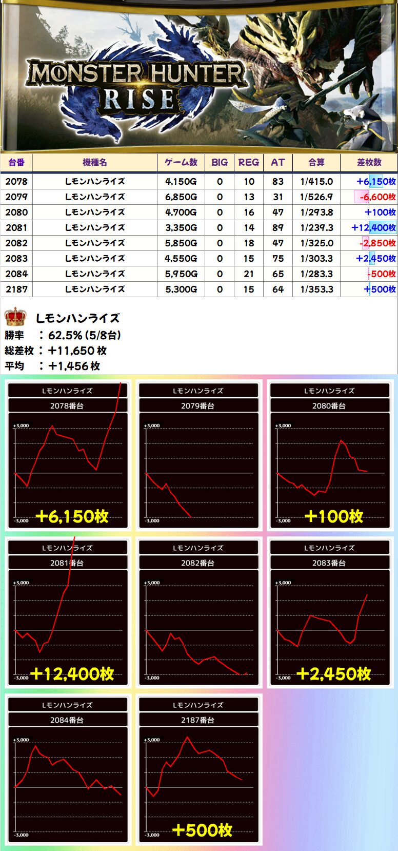 Lモンハンライズ (5/8台+) ➡平均 +1,456枚