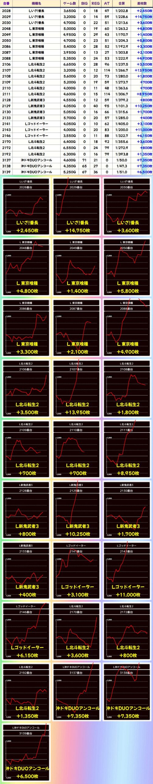 全体データは圧巻の+545枚!!さすが土曜日は強い!!
