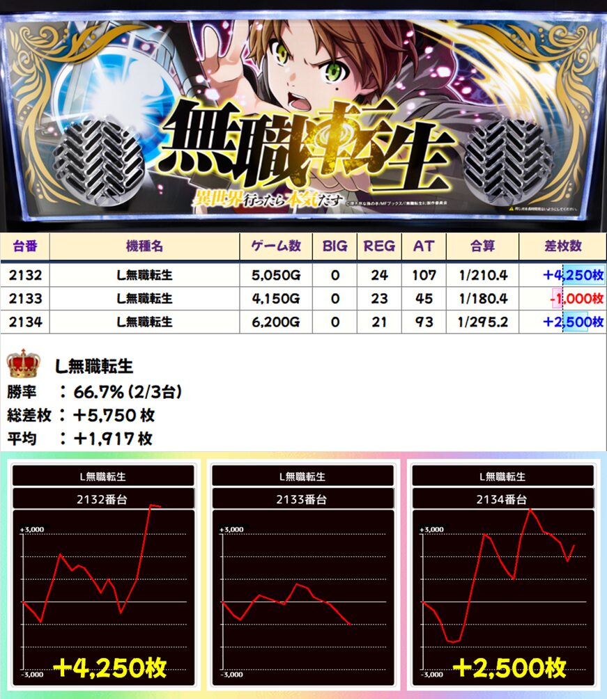 L無職転生 (2/3台+) ➡平均 +1,917枚